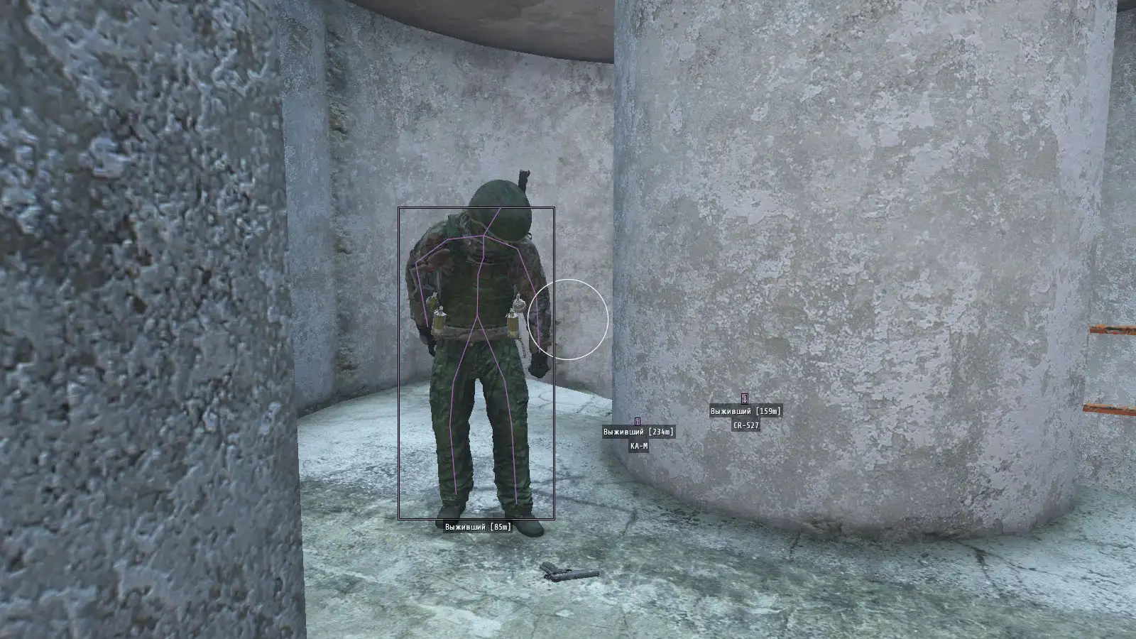 Player ESP includes lines, skeletons, nicknames, health, distance, and head hitbox highlighting. It also shows the item in the enemy’s hands, helping you quickly assess danger and choose your tactics.